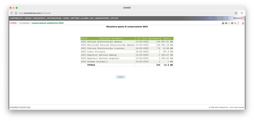 Un riepilogo dello spazio occupato dai vostri documenti sui server di conservazione digitale a norma