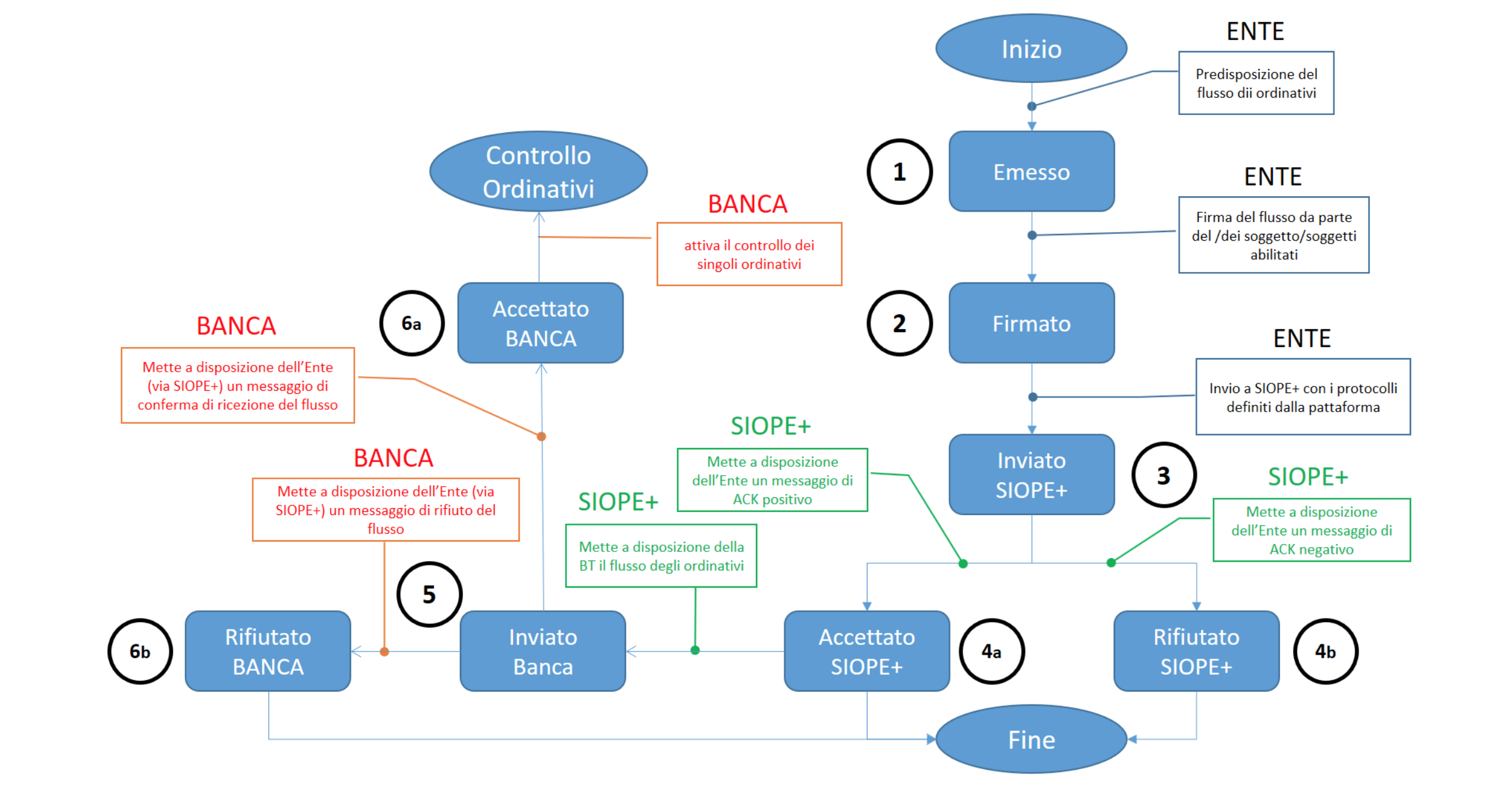 Flusso di esito: il tesoriere restituisce all’ente, sempre attraverso SIOPE+, l’esito dell’operazione (eseguita, sospesa, respinta, ecc.).