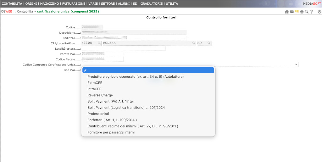 Verificare i fornitori interessati dalla certificazione unica ( Professionisti con ritenuta d’acconto) tramite la chiamata Operazioni preliminari – Controllo fornitori.