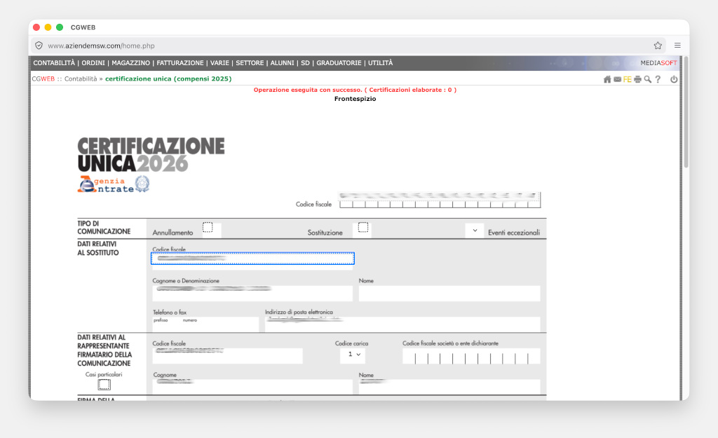 La Certificazione unica va rilasciata al percettore delle somme, utilizzando il modello “sintetico” entro il 16 marzo 2026. Entro quella stessa data deve essere effettuata, in via telematica, la trasmissione all’Agenzia delle Entrate, utilizzando il modello “ordinario”.